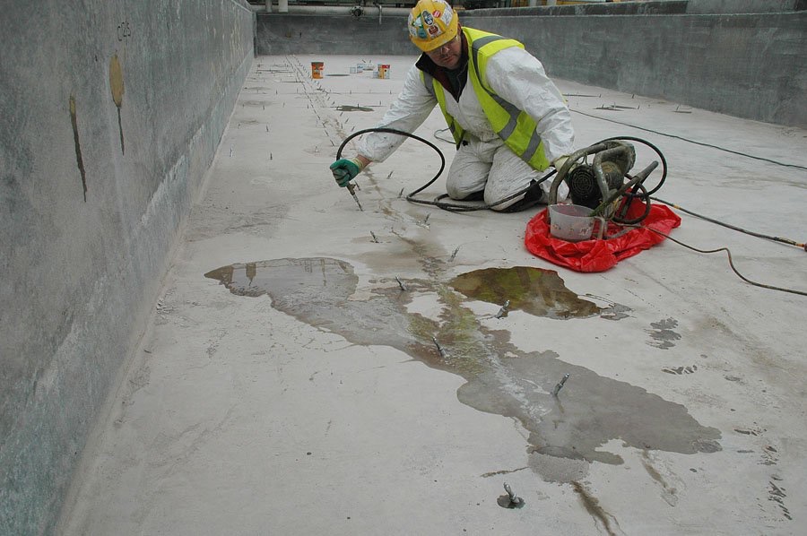 За рахунок застосування спеціалізованих гідроізоляційних розчинів у невеликих тріщинах та порах стінок резервуара утворюється непроникний бар’єр. - Гідроізоляція пазів