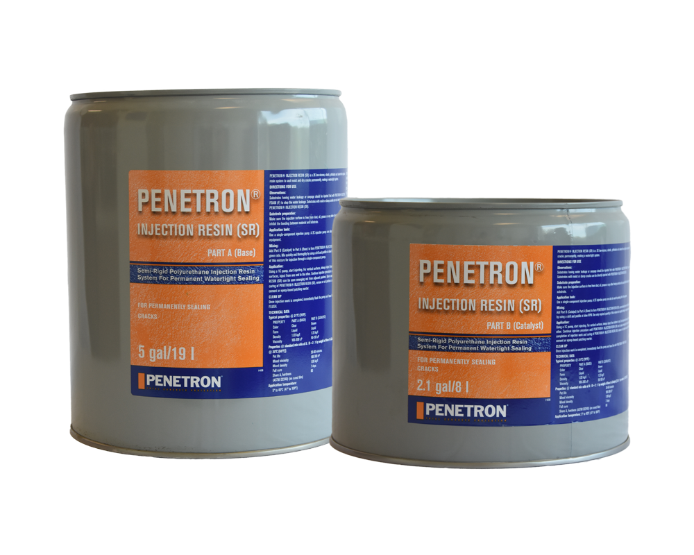 INJECTION RESIN (SR) – це двокомпонентний пластичний матеріал низької вʼязкості для герметизації рухомих швів і тріщин, в тому числі протіка